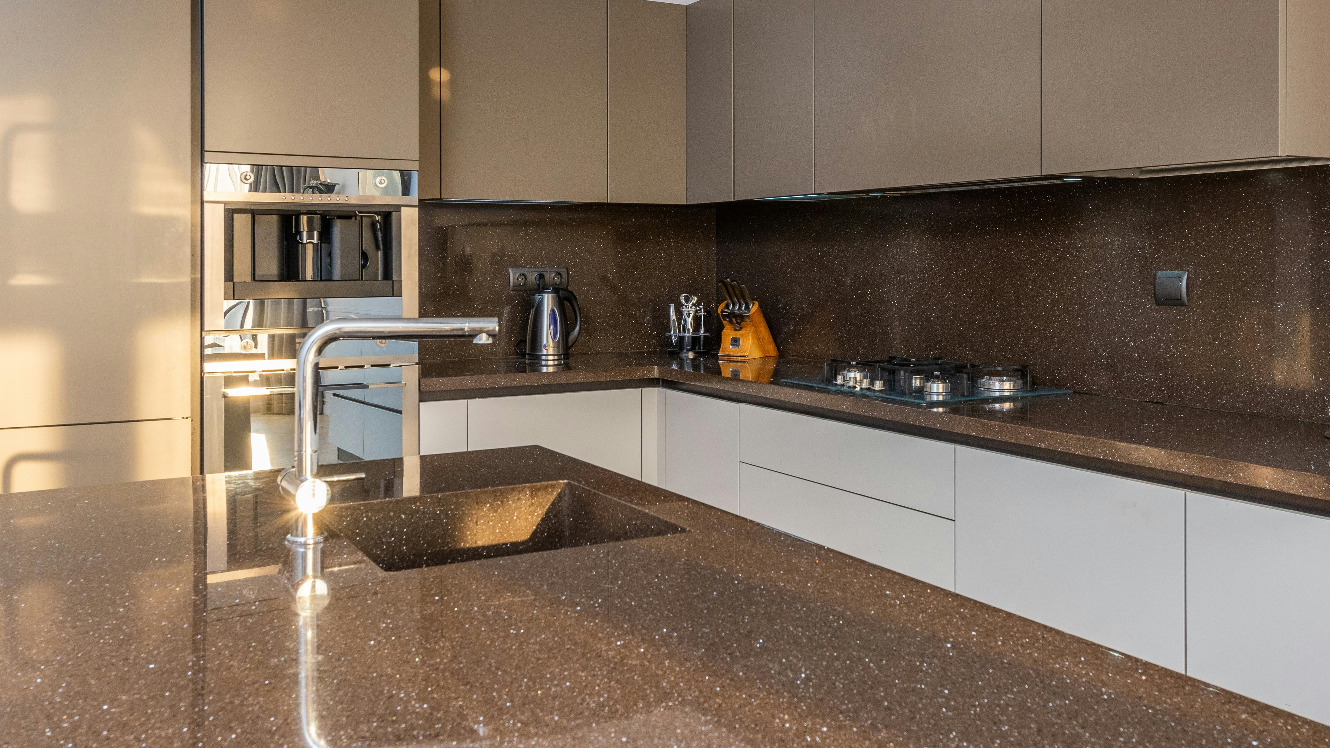 A highly strong and durable material, engineered with quartz crystals, resin and colour pigments offering a jaw-dropping look to your kitchen with its vibrant colours and patterns.Quartz worktops have changed the work surface industry in the last few decades giving customers more options of colours and styles of stone surfaces which not only look very natural but also have a higher resilience to stains and scratches than other work surfaces. Practical, affordable yet luxurious, Quartz work surfaces are arguably the best all round material for worktops.